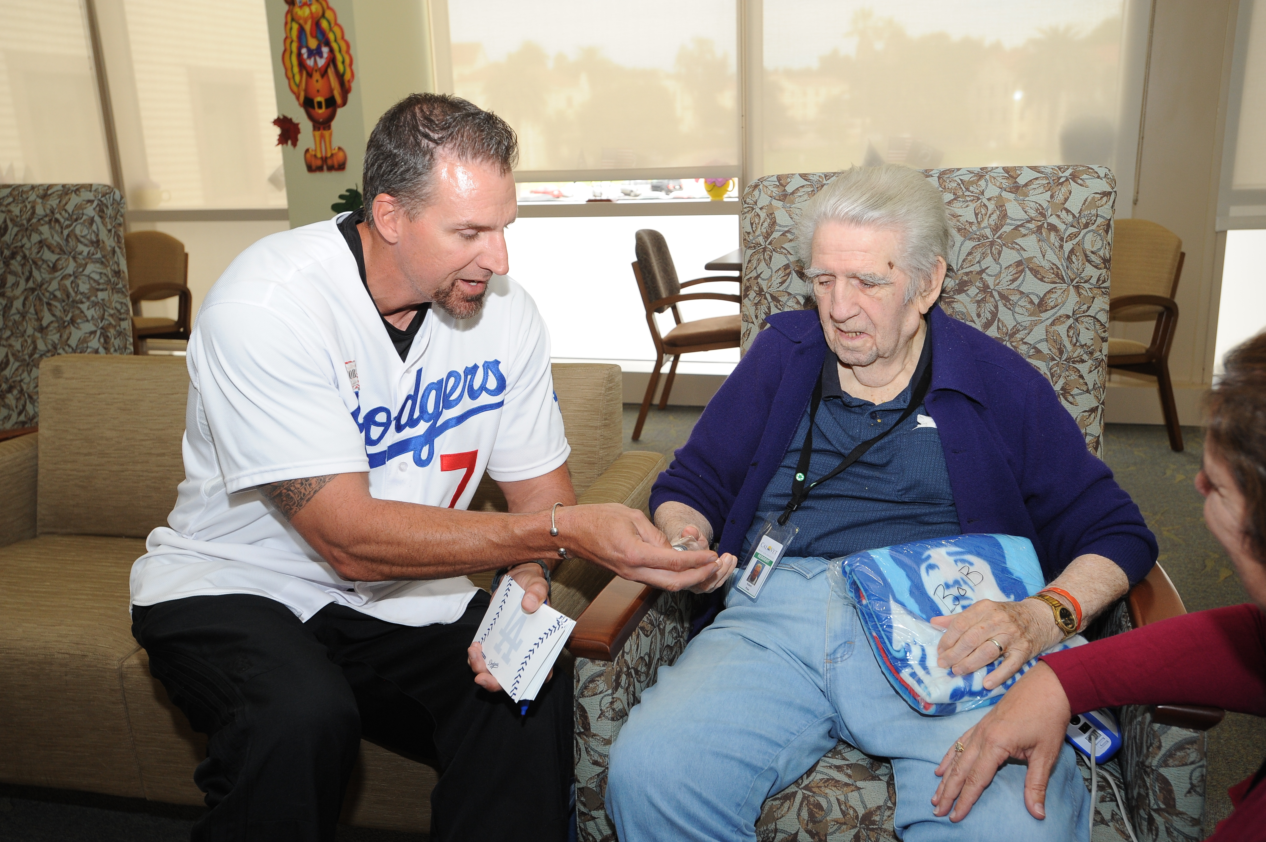 Kicking off Veterans Day early, Dodger alumnus Billy Ashley visited with residents at the Veterans Home of California in West Los Angeles on November 7. Ashley, whose father served in Vietnam with the Marine Corps, was honored and touched to meet with the residents. He presented Dodger blankets and a commemorative Dodger Challenge Coin to each veteran.