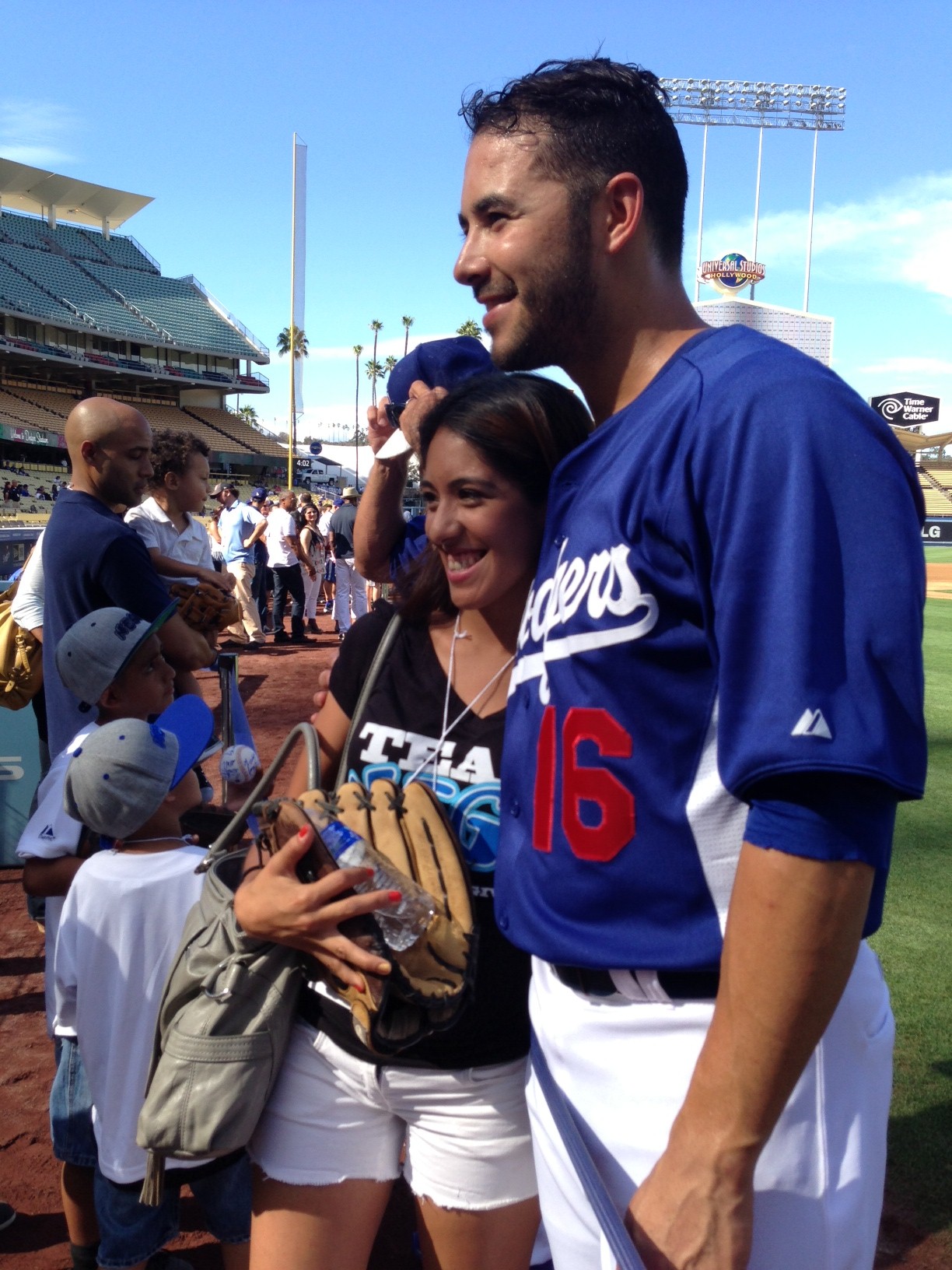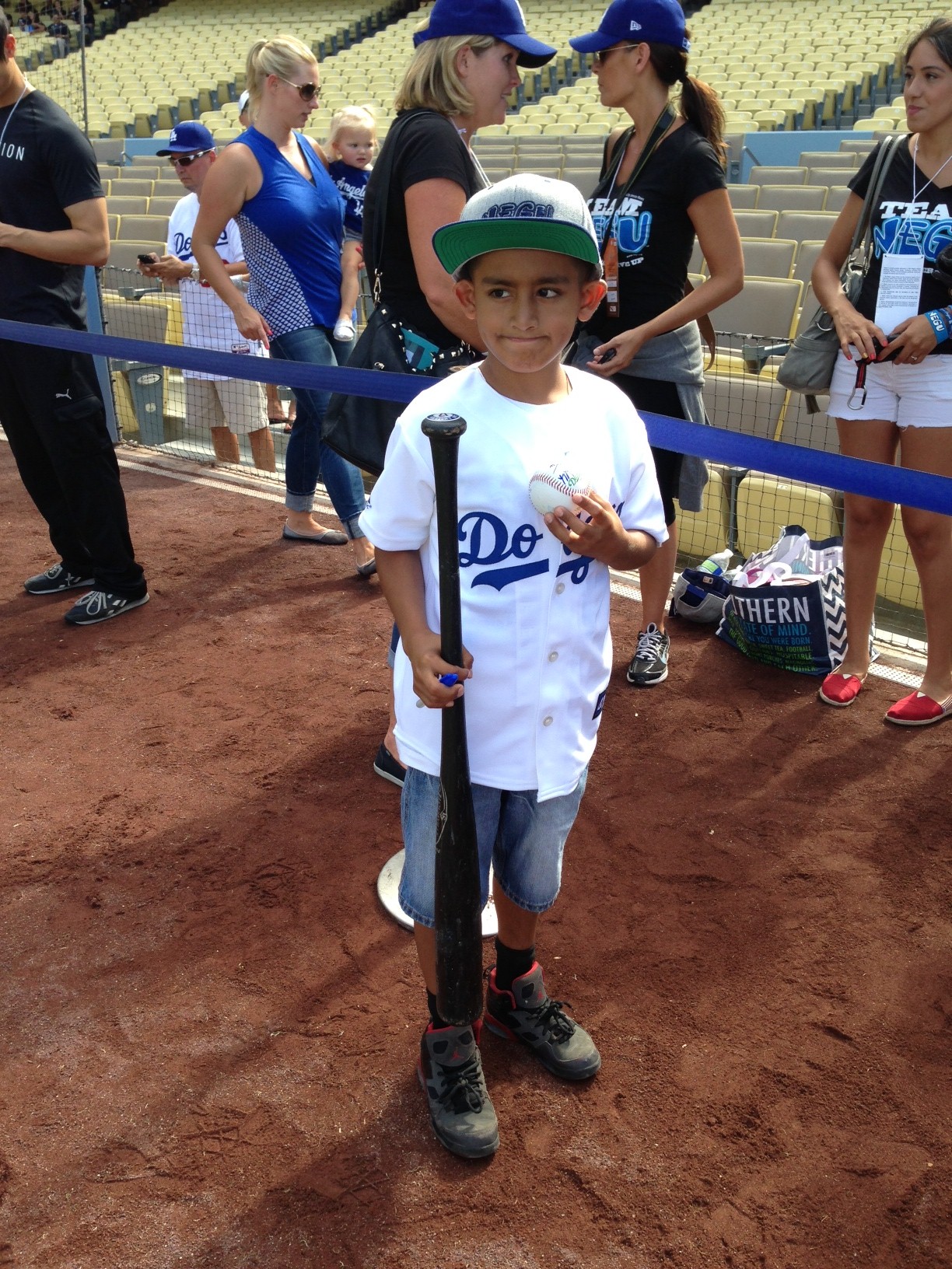 On August 31, Oscar and his family were invited to the Dodger game for a day out. Nick Punto and Skip Schumaker greeted Oscar and took him and his brother into the batting cage and introduced them to many teammates. Then Oscar and his brother went the field to watch batting practice up close and personal. Oscar’s mom and dad were just as excited as Oscar as the family are all huge fans. A day out for a young child is not always just about a moment for the child, it’s about bringing happiness and distraction for the parents and siblings as well.